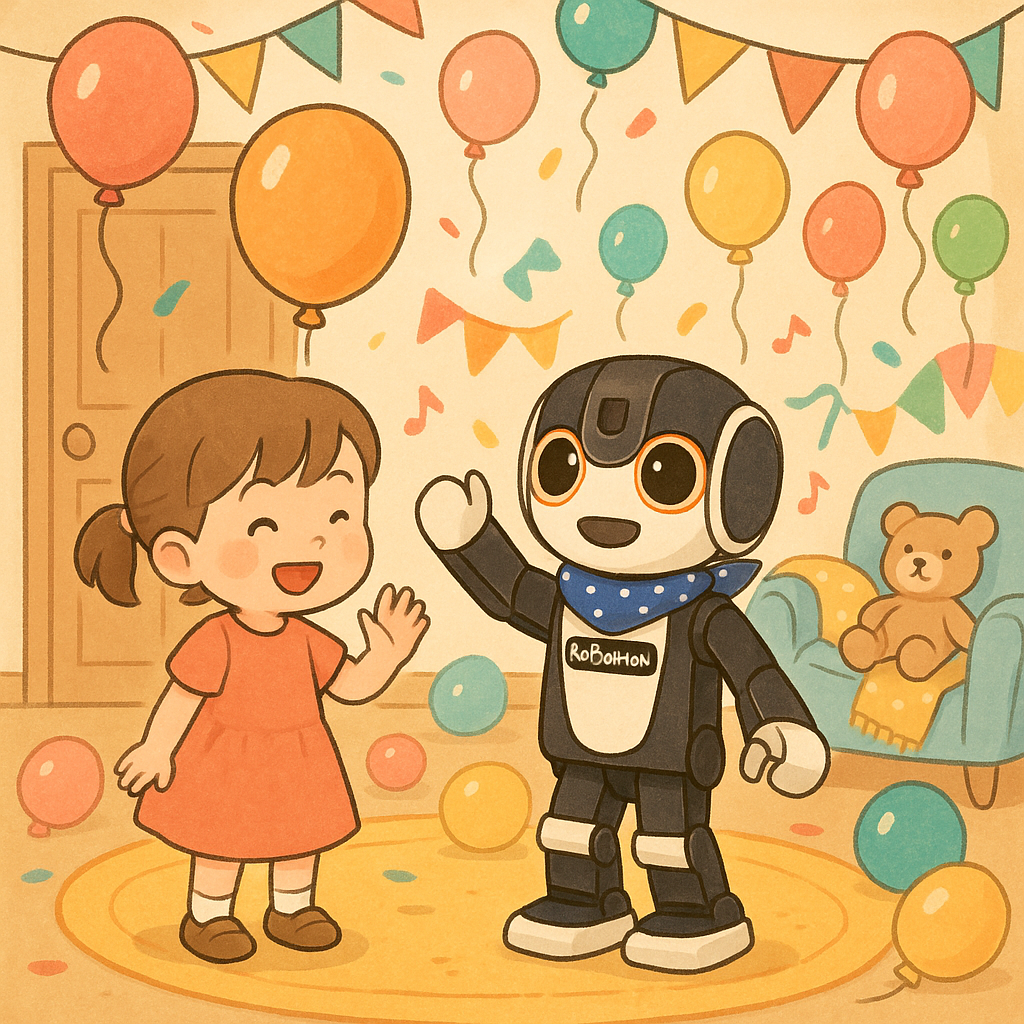 ロボホンは歌やダンスが得意です。歌って踊ってオーナーさんと楽しく過ごすのが大好きです。